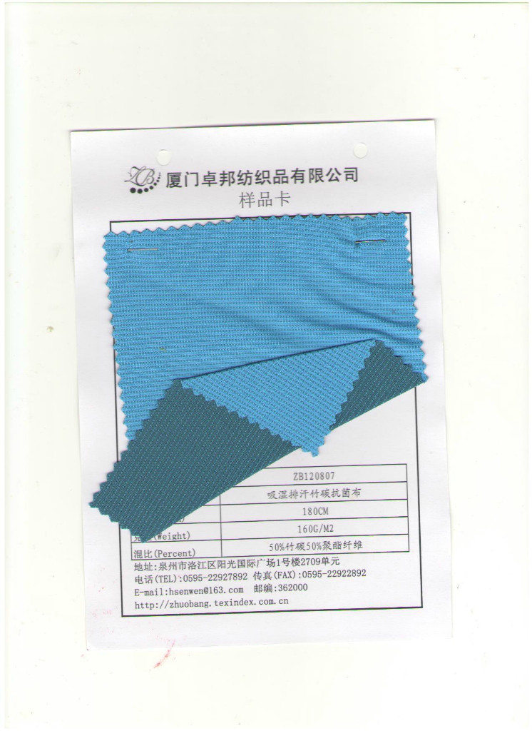 • 型号规格:卓邦ZB120807吸湿排汗抗菌竹炭面料