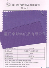 品牌:卓邦纺织 所属类型: 面料,针织面料 关 键 字: 吸湿快干,抗菌,网店布, 产品代码: ZB-1578 产品品牌: 卓邦纺织 产品系列: 针织印花、压花面料 克重: 150克/m2 后整理方式: 染色 用途: 服装用布 成份: 全涤 门幅: 180cm 印染加工方法: 染色布